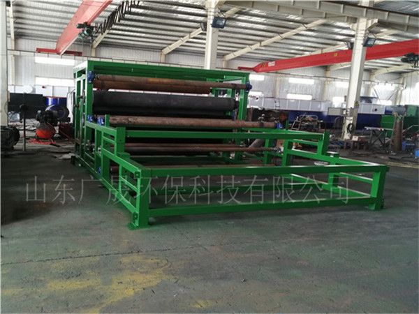 带式压滤机是通过两条滤带缠绕在一系列顺序排列、大小不等的辊轮上,利用滤带间的挤压和剪切作用,来脱除料浆中水分的一种压滤设备,具有着能连续作业、自动化程度高、节能、使用维护方便等优点,是一种进行污泥脱水减量化处理的理想设备。